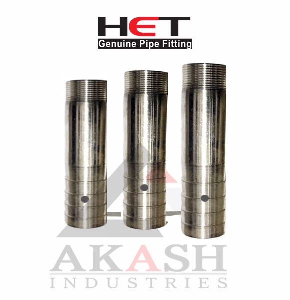 Akash Industries We are Leading manufacturers & supplier engaged in offering wide range of HET Brand Steel Nipple - SS Step Nipple - Step Nipple - SS Reduce Step Nipple - SS Reduce Connector Nipple - SS Barrel Step Nipple, GI Step Nipple, GI Hose Nipple, GI Barrel Nipple, GI Reduce Step Nipple, GI Reduce Connector Nipple, GI Reduce Nipple, GI Sambo Nipple, BP Step Nipple, BP Groove Nipple , BP Reduce Step Nipple ,BP Reduce Sambo Nipple Large, BP Barrel Nipple , BP Reduce Barrel Nipple, Black Reduce Nipple, All Type Agriculture Pipe Fitting and Submercible Pump Fitting Products Equipment, Commercial Pipe Fittings Products Equipment is manufactured using optimum quality raw material provide to industries leading price. available to customized required of costumer need. at (RTC) Rajkot Gujarat India.